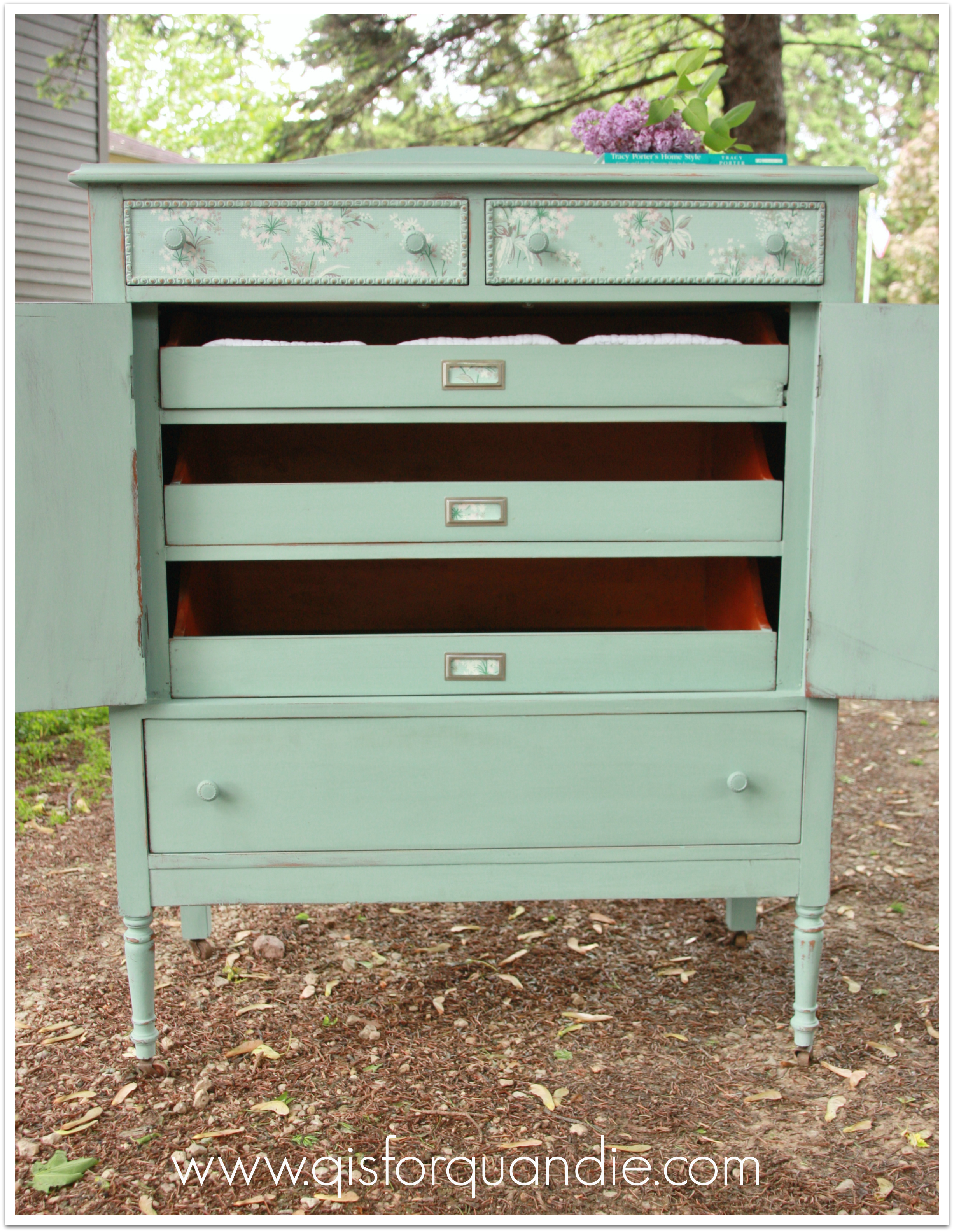The turquoise chair and painted suitcase both sold, as did all of the martini shakers, but the credenza did not. I’ve got it listed on craigslist now, so hopefully the right buyer will find it there.