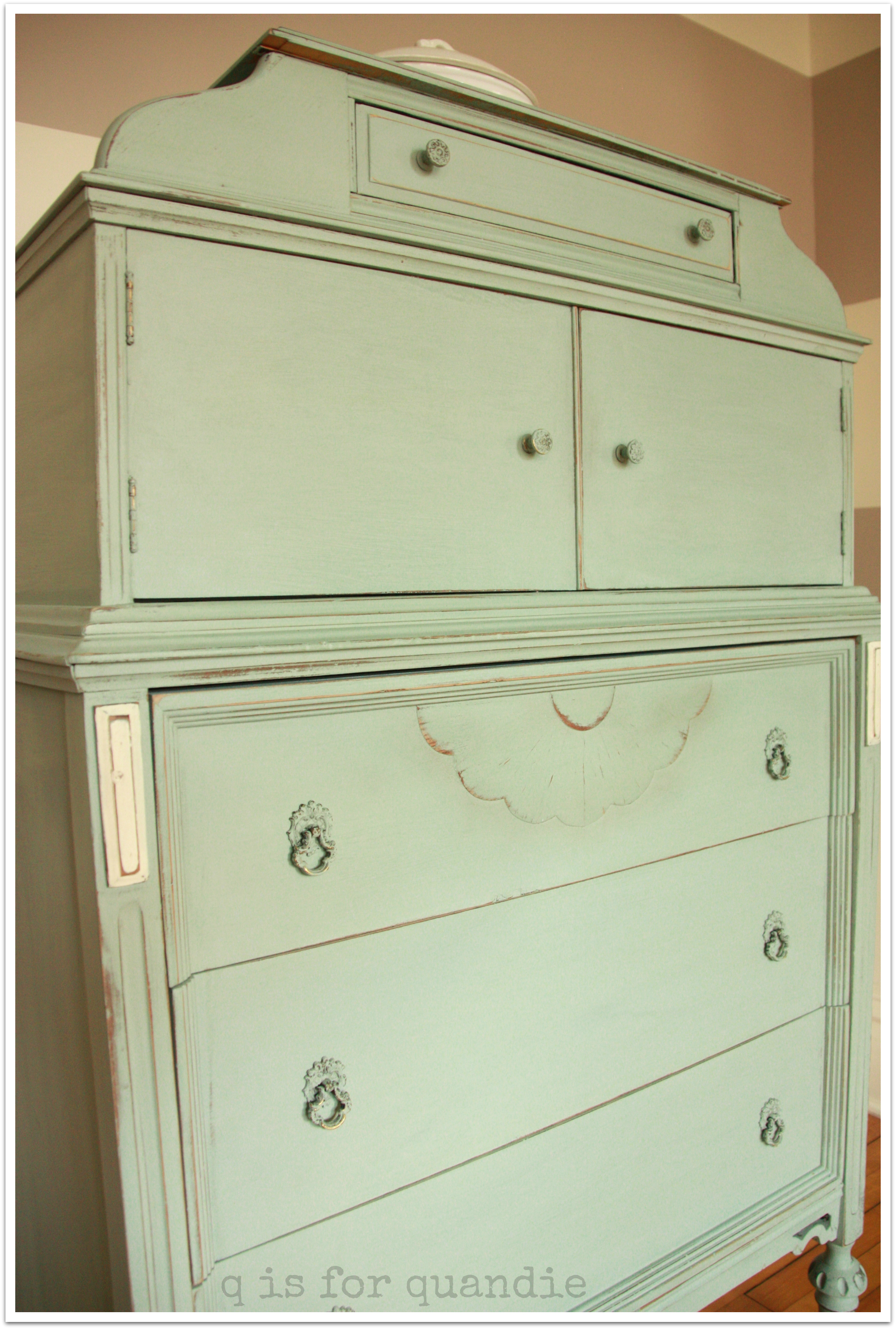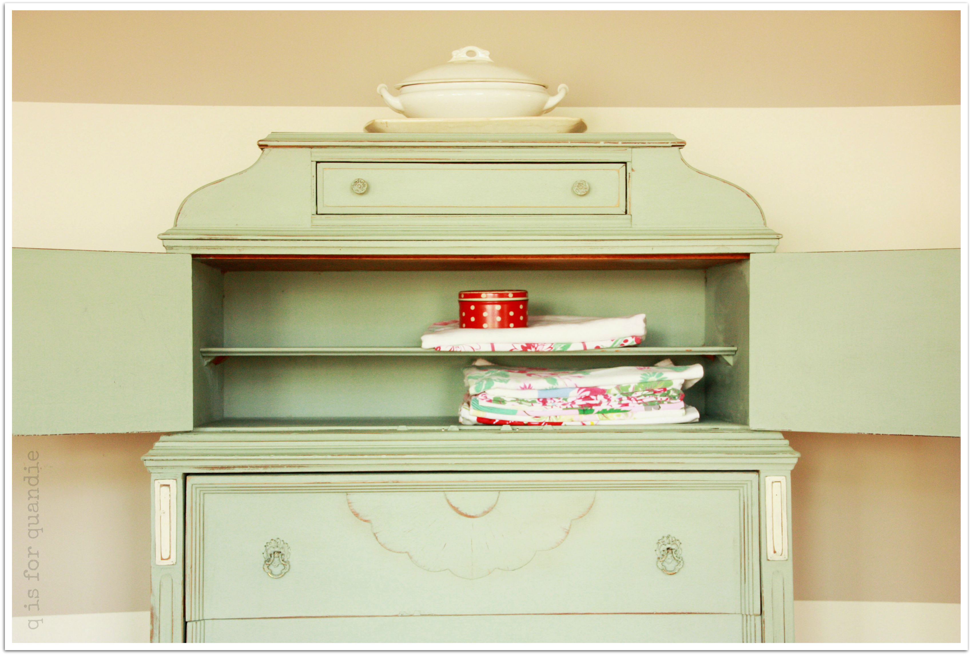 I gave the drawers new glass knobs, and I think they help up the ‘pretty’ factor.