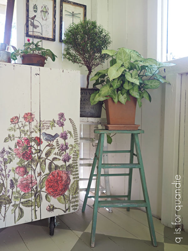 Now that I have the painting finished, this week we’ll be moving the furniture back in and getting the potting shed styled. I’m a little bit nervous to see how my potting bench is going to look with that floor.