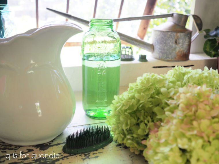 After letting the paint dry for 72 hours, I protected it with several coats of Varathane clear matte water-based poly letting each coat dry for 24 hours in between. Some of you may remember that we had our upstairs floors refinished a few years ago. We used a matte finish on them and I still absolutely love them, so I wasn’t afraid to go matte on this floor. I did a little quick research online and found this article which explains that basically matte poly provides the same durability and protection as shinier versions. In addition, the higher the sheen, the more scuffs, scratches, and footprints will show. So hopefully this matte finish will hide a multitude of sins in the potting shed.